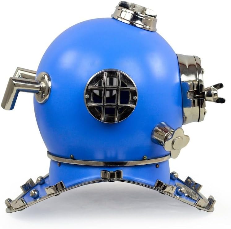 Well made helmet with premium quality - Material: Steel, Aluminum and wooden base - Size: 18" Inchs - Top head measurements: 16" x 12.5" x 17" / 40 cm x 32 cm x 42 cm - Wooden base size: 38 x 48 x 19cm - Diving helmets are a great addition to your helmet collection. - The helmet is made of strong and durable metal that is designed to make a helmet. This is a wonderful piece that can make a "great addition to your collection" - Usage: Table Top Decorative / Room Decorative / Home Decorative / Best